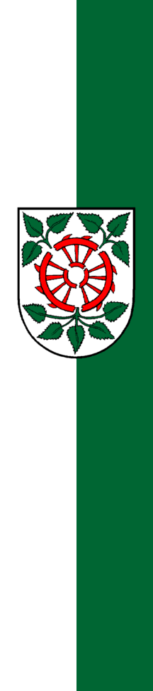 | Description of arms (German): | In Silber erhöht ein in drei Teile gebrochenes Richtrad mit elf (3:4:4) Speichen; aus den Bruchstellen wachsen auswärts grüne Birkenzweige, oben mit je drei, unten mit fünf Blättern. |