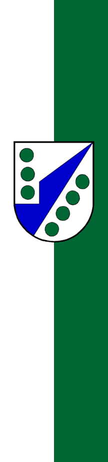 | Description of arms (German): | In Silber eine vorne rechtwinkelig ausgenommene schräglinke blaue Spitze, diese vorne von drei übereinander stehenden grünen Ballen, unten von vier schräg gereihten grünen Ballen begleitet. |