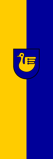 | Description of arms (German): | In Blau eine rechtsgewendete goldene Ente. [1] |