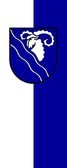 | Description of arms (German): | In Blau über zwei schmalen schrägrechten silbernen Wellenbalken ein silberner Widderkopf. [1] |