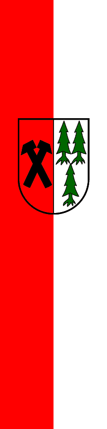 Description of arms (German): | In gespaltenem Schild vorn in Rot ein schwarzes gekreuztes Bergwerkshammerpaar und im silbernen Feld drei bewurzelte grüne Tannen. [1] |