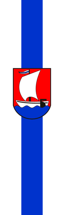 | Blazoning of arms (English): | Gules, on a base wavy Azure a sailboat Argent with rudder and mast Sable and a pennant Argent-Azure-Argent. |