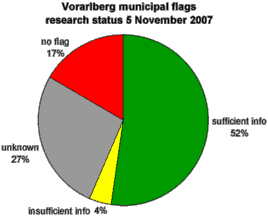 The Austrian state Vorarlberg has 96 municipalities, 4 of them are towns/cities. The early history of the municipal coats-of-arms is similar to adjacent Austrian and German states, i.e. originally only towns and market-towns had their own arms, between WW1 and WW2 a number of municipal coats-of-arms were granted. The Gemeindegesetz of 1965 (Law on municipalities) made it obligatory to grant arms to all municipalities; this had been achieved until 31 December 1970. The book containing all the coats-of-arms is [brm75].