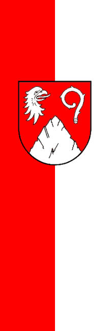 | Description of arms (German): | In Rot eine aufragende Felskuppe, überhöht rechts von einem Adlerkopf und links von der Kurvatur eines Pedums, beide einwärtsgekehrt und alle Figuren silbern. [1] |