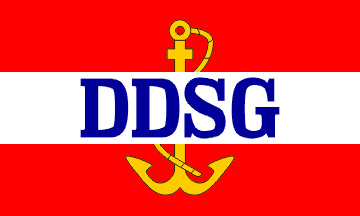 inscription "DDSG" in the white stripe and a yellow cabled anchor over the red stripes.