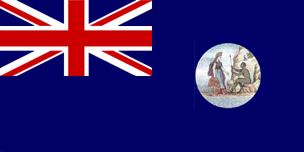 From 1876 to 1904 South Australia used a different badge from the one now on its flag. It represented Britannia talking to an aborigine. South Australia also used the red ensign with the same badge from 1876 to 1901 as civil ensign. Source: R.D. Kelly, Australian State Flags (1865-1904): A British Admiralty Legacy, report of the XIII ICV, Melbourne, 1989. [kLy93]