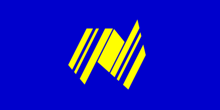 This blue and gold flag is being flown to mark the national celebrations in 1988 of two centuries of European Settlement in Australia. The golden symbol consists of seven stripes representing the Australian continental land mass, including Tasmania. The proportion so the stripes relate to those of the Union Flag. The colours, blue and gold are derived from the National Coat of Arms of Australia.I do not remember seeing the flag, however I was only 7 at the time.