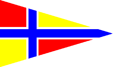 The burgee of the Adelaide Sailing Club (ASC) is divided by a blue cross bordered in white. First and fourth quarters are red, whereas second and third quarters are yellow.