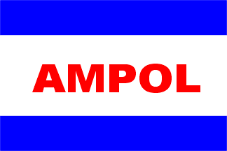 Ampol Ltd., Sydney - horizontal BWB flag, red "AMPOL".