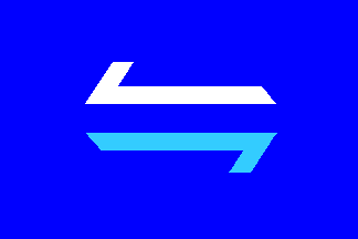 In December 1974 the company was reorganized as the New South Wales Public Transport Commission adopting the following year a blue flag with an emblem of 2 half arrows, white over light blue, pointing to hoist and fly respectively (shades of blue uncertain except one dark, the other light):