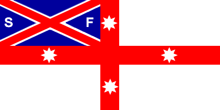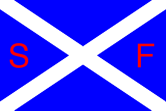 Sydney Ferries originated 1900 as Sydney Ferries Ltd. with a blue flag having a white saltire and the red letters "S" and "F" in hoist and fly respectively: