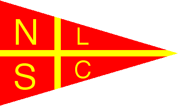 The burgee of NLSC is red, quartered by a yellow cross and with the yellow letters "N", "L", "S" and"C" in the respective quarters.