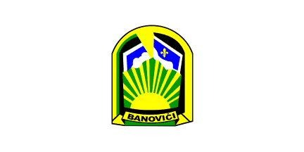 The flag of Banovići, as shown on the municipal website (photos no longer online), is, in proportions 1:2, white with the coat of arms in the middle.