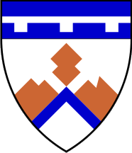 The coat of arms is "Argent a chevron per chevron abased