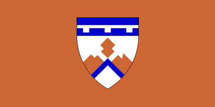 The label in the chief represents a bridge, while the miner's hammers