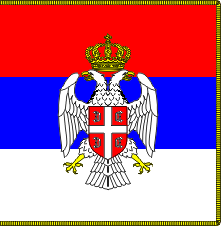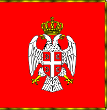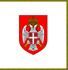 The former flag of the President of Republik Srpska is square banner of the arms of the Republic in the middle, fringed on three sides with gold.