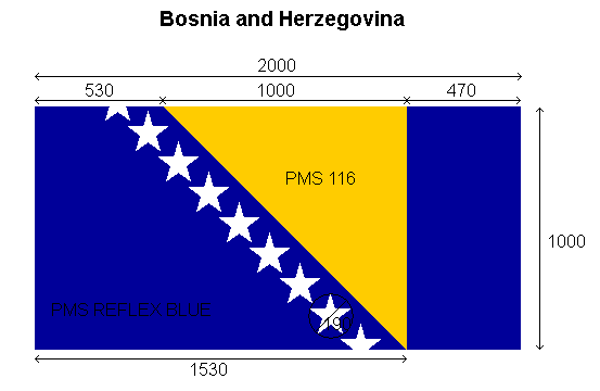 Construction sheet for the flag of Bosnia and Herzegovina - Image by Jan Oskar Engene, 9 February 1998