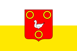 the lesser municipal coat of arms in the middle. A picture of the flag