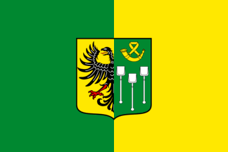 The municipal flag of Colfontaine is vertically divided green-yellow