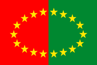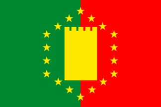 germanophones, the Heraldry and Vexillology Council of the French Community proposed a flag vertically divided green-red with, in the middle, the silhouette of a yellow donjon surrunded with 18 stars arranged in an hexagon. The municipality swapped the vertical stripes,