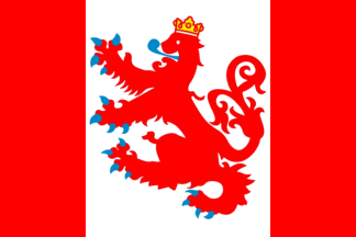 The municipal flag of Sankt Vith is vertically divided red-white-red (1:2:1), with the white stripe charged with the lion from the municipal coat of arms.