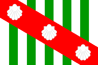 The five green pales symbolize that the name Canavieiras originated from the cane fields [canaviais] that long ago belonged to the Vieira family, which was important in the earliest period of the city. The red bend charged with three scallop shells [vieiras] of silver symbolizes the Vieiras with elements of their family arms, and also recalls the patron saint of the city, St. Bonaventure, through the red color of the bend. The six white (silver) stripes represent our white sand beaches, silvery on moonlit nights. The flag of Canavieiras is the result of a competition sponsored by the local Lions Club, in 1967, during the administration of João Perelo de Matos, of which Jorge Silva Souza was the winner.Dov Gutterman, 24 February 2002