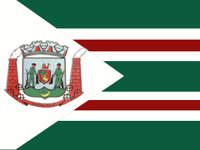 Horizontally striped green-white-green-white-green, with a narrow red stripe on the two white stripes; extending off the hoist a white triangle bearing the municipal arms.