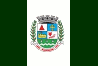 A green-white-green vertical triband with the municipal arms placed in the centre.