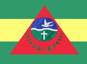 Overlapping the three stripes, a red triangle (the emblem of Minas Gerais), is