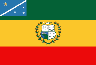 The municipal web page records that the flag has historical and symbolic similarities to that of the state capital, Campo Grande, was designed by Amintes Nunes de Moura on 7 September 1975 and adopted on 4 of February of 1991 by Mayor Municipal Euripedes Lima Andreani by Decree 2275 of 4 February of that year. In the upper left corner of the flag is an emblem that resembled the flag of Mato Grosso do Sul.