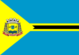 de Faria product: coat of arms on a triangle in the hoist, with horizontal stripes in
