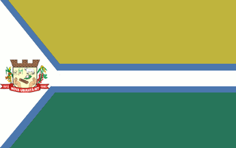 Divided per pall white, fimbriated blue, gold above, green below, white in the hoist, bearing the municipal arms on the white field.