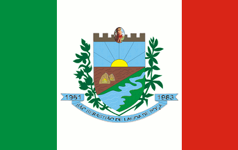A 1-2-1 tricolor, green-white-red, with the arms in the centre.