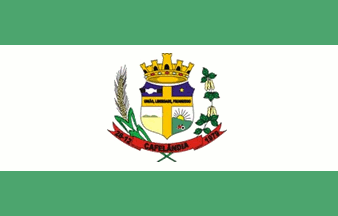 A horizontal triband, 1-3-1, green-white-green with the municipal arms centred on the white stripe.