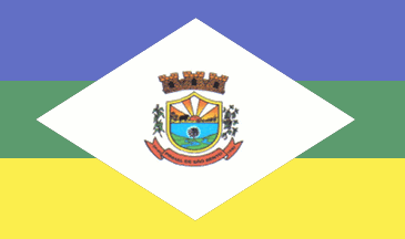 Divided horizontally, blue-green-yellow, in the centre a white diamond bearing the municipal arms.