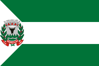 A horizontal triband, green-white-green with a narrow white triangle extending from the hoist, bearing the municipal arms.