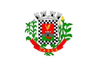 The flag of Casca is the municipal coat of arms on a white field. The coat