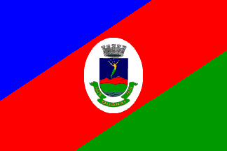 Keywords: rio grande do sul | quarai | triband: diagonal (blue | red | green) | coat of arms | fairy | oval (white) |