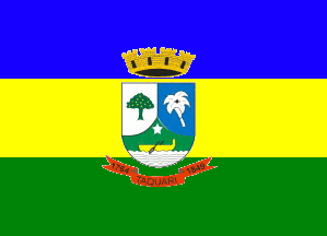 town's flag; visible in the background the flags of Rio Grande do Sul state, of