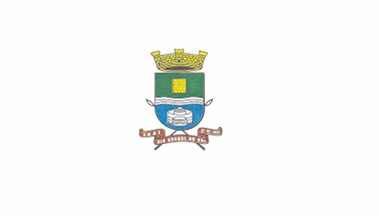 A white flag with the municipal arms in the centre.