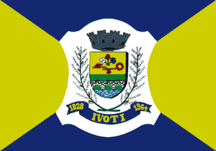 The flag of Ivoti is prescribed by Municipal Law No. 198 of 18 October 1973. The shield in the middle of the flag is said to be "a stylized heart" [in the text, the heart is said, twice, to be "sterilized", which is, of course, a very unfortunate typo.]