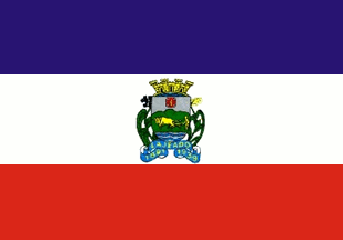 A blue-white-red horizontal tricolour with the municipal arms in the centre.
