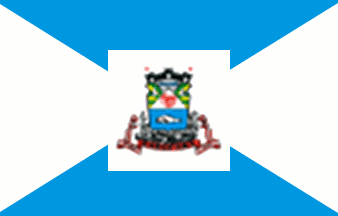 The flag is 2:3, white and blue per saltire, with the coat of arms on the center. The coat of arms was approved by law 186/71.
