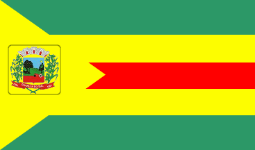 Horizontally banded green-yellow-red-yellow-green, with the municipal arms in a yellow triangle extending from the hoist.