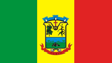 A vertical tricolour, green-yellow-red, with the municipal arms in the centre.