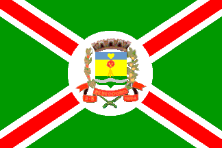 The flag of Bebedouro, SP, is from the official municipal website. It is green with a red saltire charged on a wider white saltire, with the municipal arms