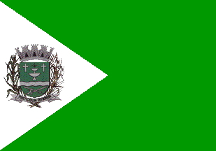 The flag of Águas de Santa Bárbara is green with a white triangle placed along the hoist, charged with the municipal coat of arms.