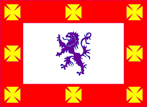 has a purple lion rampant in the white panel. This is a banner of the municipal