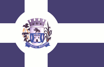 A white off-centred cross on a dark blue field with the municipal arms on the cross on a white disk.
