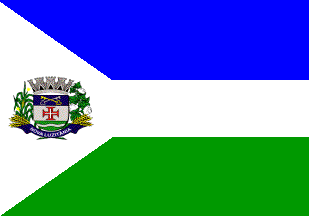 The symbols, designed by Lauro Ribeiro Escobar, are prescribed by Municipal Law No. 384. The flag is horizontally divided blue-white-green with a white triangle placed along the hoist and charged with the municipal coat of arms.